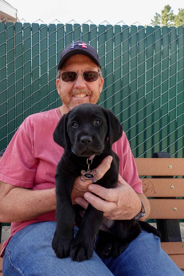 Meet Cali, our sponsored puppy. She is an adorable Black Labrador Retriever born on December 22, 2023 and went home today with her new mom and dad, Bob and Kathie