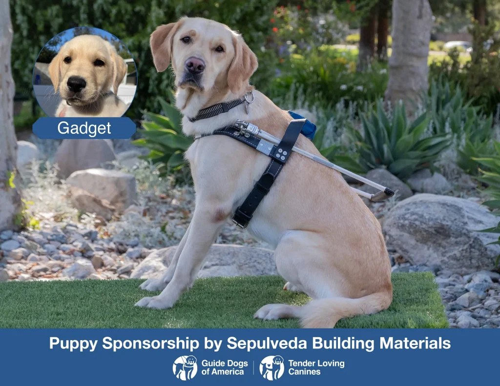 Gadget is a darling Yellow Labrador/Retriever cross born on 6-2-21. He is being raised by Tammy and Mark from GDA’s Orange County puppy raising group.