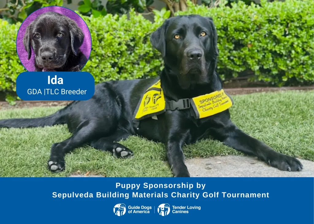 Meet Ida, She is a very cute Black Labrador Retriever. She was born on April 18th and went home with her puppy raiser, Janet from our Orange County group.